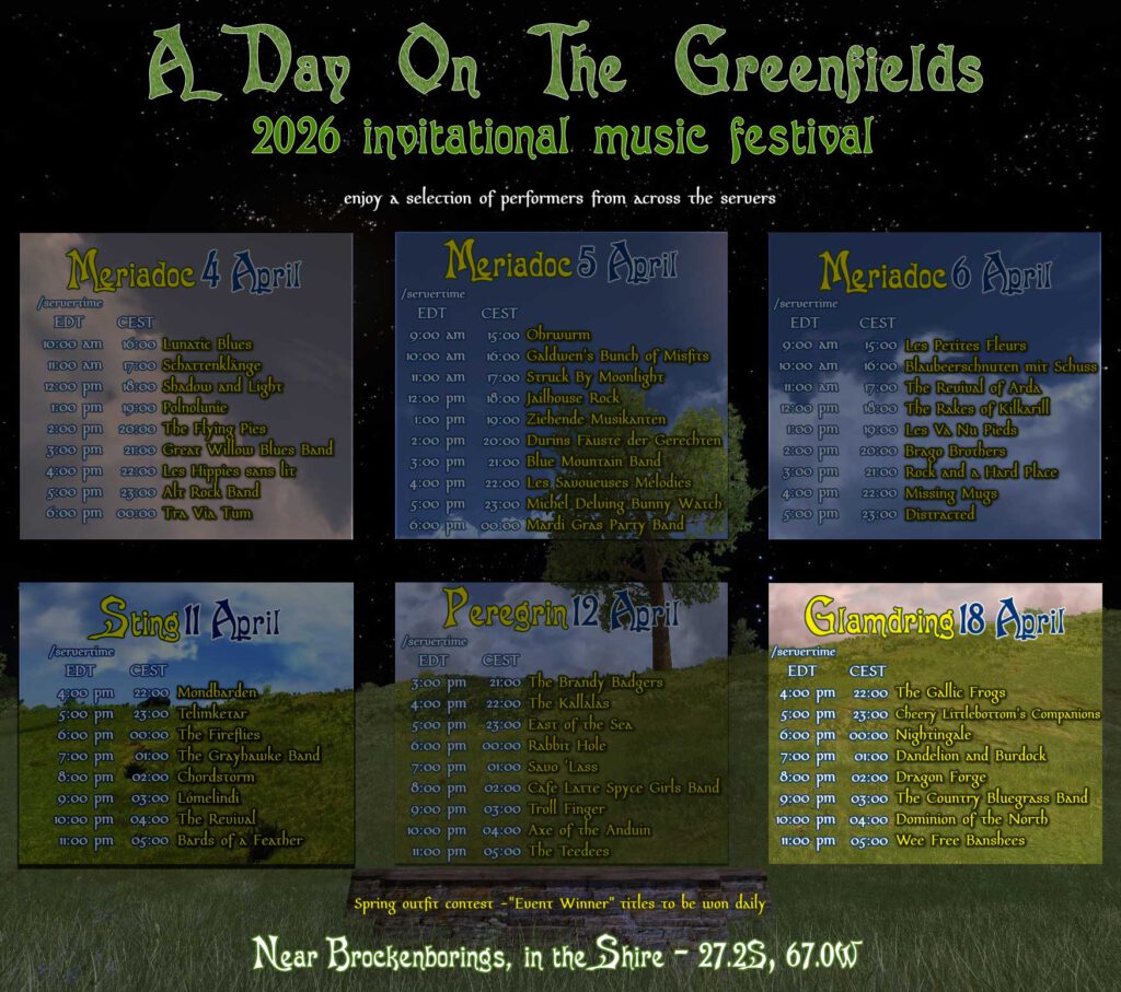 A Day On The Greenfields started on Landroval in 2014 and over the years added other servers to the music festival.
