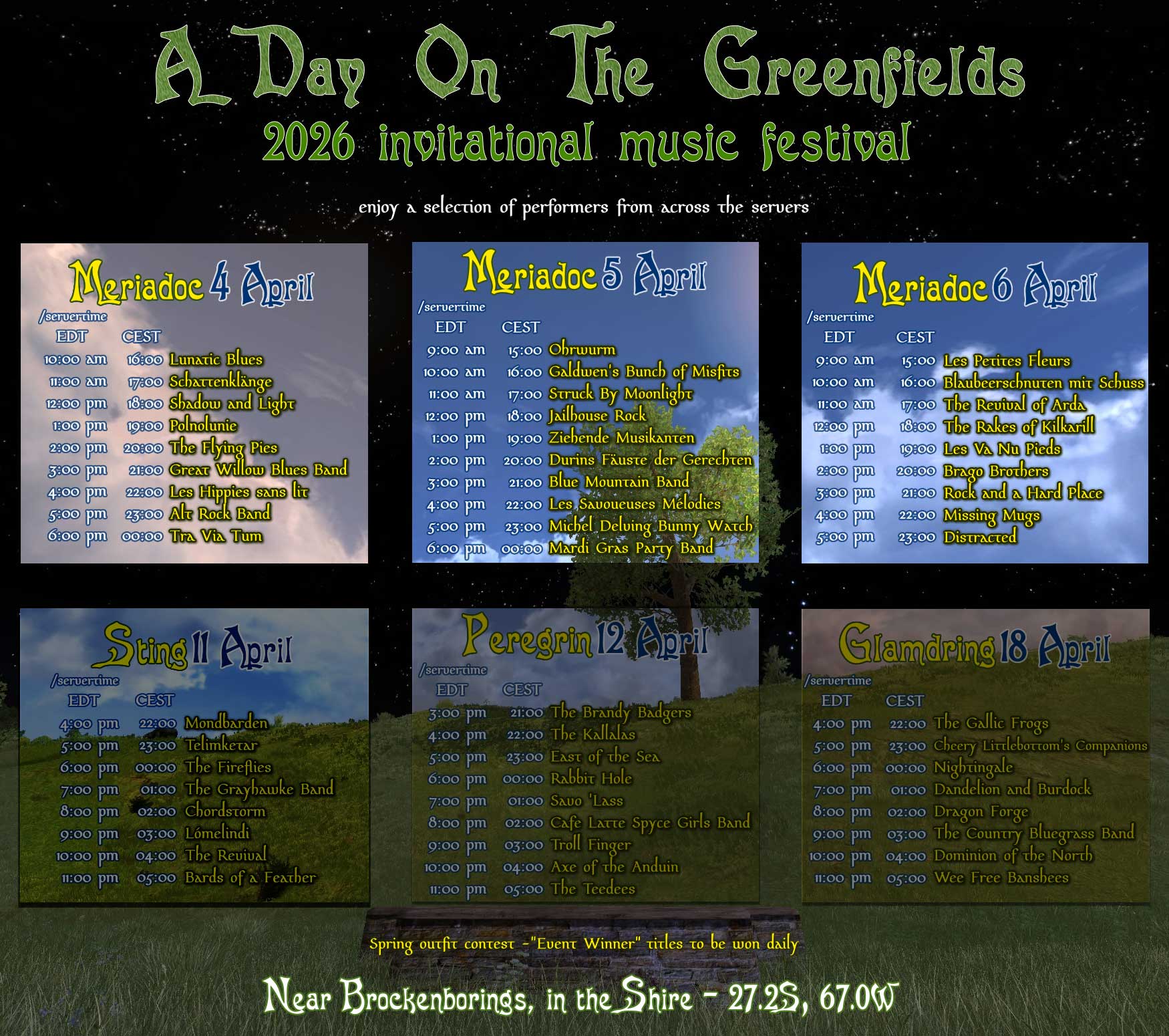 A Day On The Greenfields started on Landroval in 2014 and over the years added other servers to the music festival.